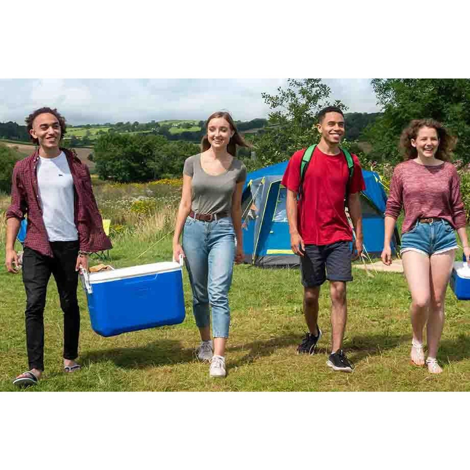 The Peformance 6 Personal Cooler is always a trusted standby. The Coleman®-quality insulation will give you great cooling performance for your camping trip, family picnic, BBQ or outdoor event. Features and Specifications: A generous 4.7 litre capacity allows you to store up to 6 0.33Litre cans Robust casing and sturdy lid makes this cooler perfect for long road trips and camping Versatile reversible FlipLid top can also be used as a serving tray with engraved beverage holders for your peace of mind Safety locking system ensures that the inner contents of the cooler stay secure during transportation Ice retention of up to 9 hours keeps your food and beverages cold for up to 9 hours Capacity: 4.7 Litres Total weight: 0.8 Kg Color: Blue Inner product dimensions: 22 x 16 x 13 cm Outer product dimensions: 27 x 20 x 18 cm