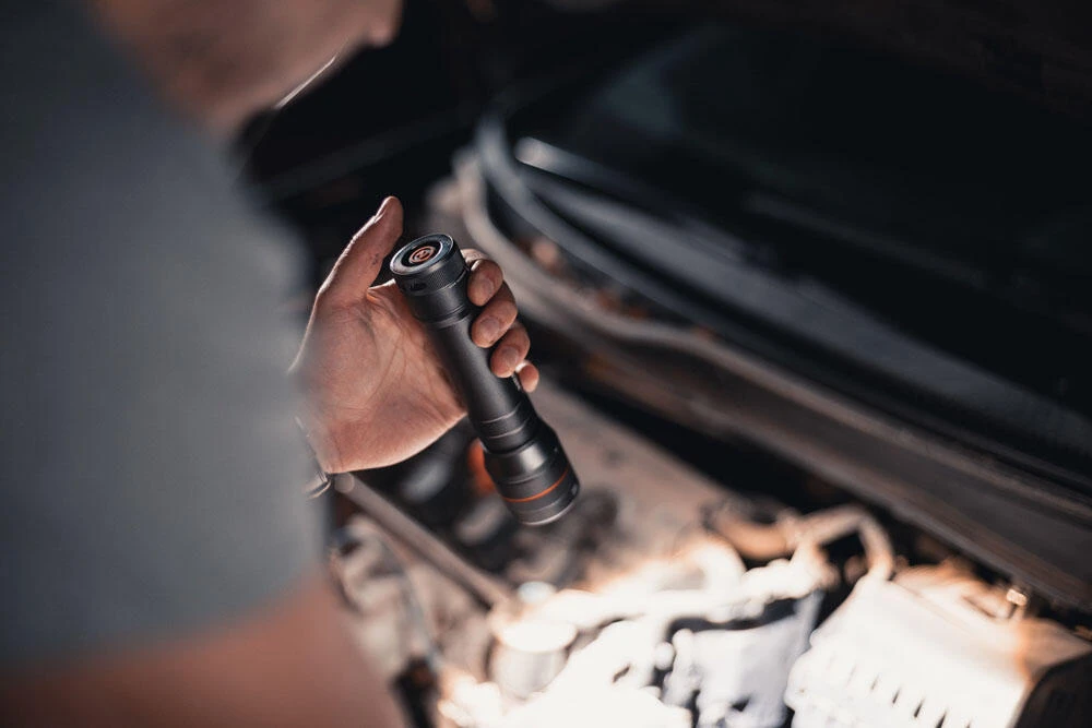 The Newton™ 1000 lumen flashlight by NEBO is a powerful handheld flashlight with 4 light modes. The included mode selection dial makes it easy to switch between modes and the powerful LED in this flashlight can light up 155 meters.